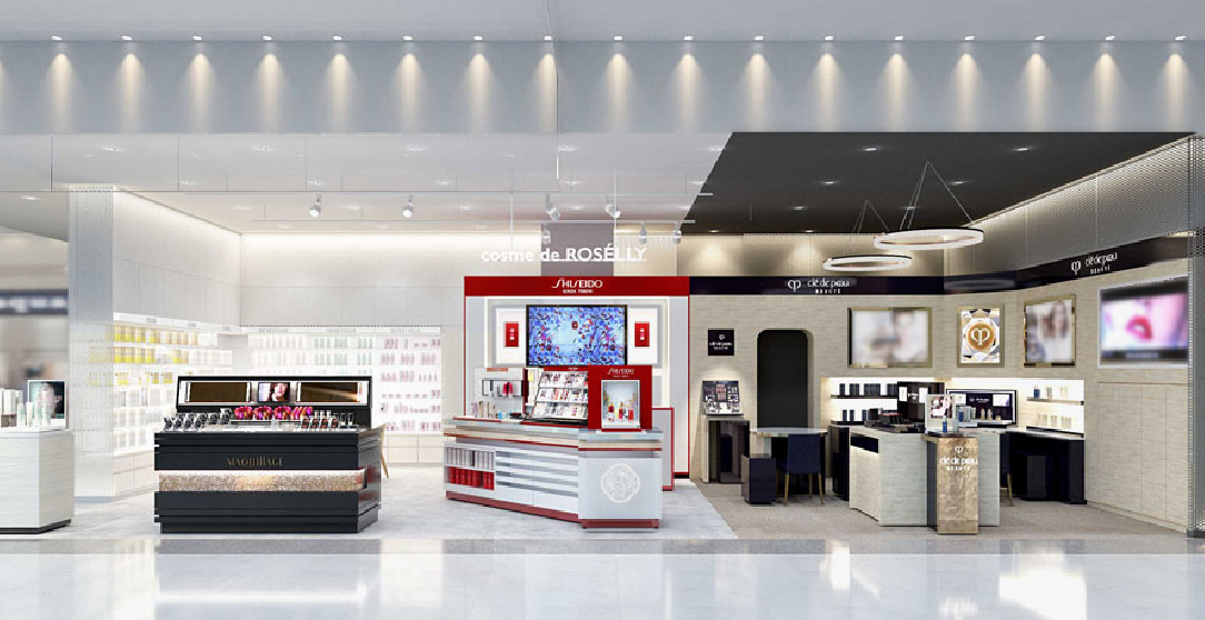 資⽣堂の様々なブランドとコーセーの2つのブランドがそろうコスメショップ。